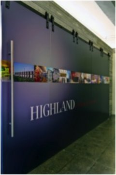 The centerpiece of the design is a weathered, wood “box” that houses the reception area along with a sophisticated, multi-media conference room. The box is “opened” by an eighteen foot barn door emblazoned with photographic images of the firms work. The barn-like box pays tribute to Highland’s home state of Pennsylvania where the firm was founded in 1988. This homage to the Commonwealth’s rich agricultural history is a significant juxtaposition to the modern, city space.