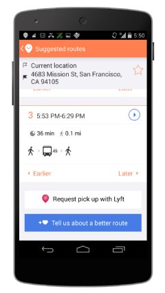 With Moovit 3.5, available for free today in the Google Play:Store, commuters can now rely one app to get them to their destination on time, based entirely from the power of the crowd. If Moovit’s real-time collection of up-to-the-minute intelligence on public transit times still can’t get them to the platform on time, Lyft now offers Moovit users instant access to its community of nearby rideshare drivers directly through the app.