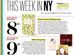 The TrendingNY culture section, “This Week in NY,” is a detachable agenda for the week’s best happenings, from book and album launches to show openings and music events. Each issue also includes a Q&A with a celebrity, a longer feature (the debut issue tackles the matchmaker trend) and a fashion cover story.