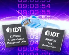 The new family of chips includes synchronization management devices (SMDs) and port synchronizers for IEEE 1588 and synchronous Ethernet (SyncE). The SMDs manage IEEE 1588 time and frequency generation and SyncE synchronization. The port synchronizers select between redundant SMD signals and provide accurate time and low-jitter clocks to the network ports in the system.