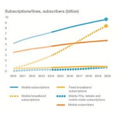 The report predicts a strong uptake in the coming years as the number rises from 2.7 billion smartphone subscriptions today to the forecasted 6.1 billion in 2020.