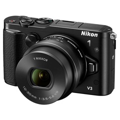 The Nikon 1 V3, Advanced Camera with Interchangeable Lenses, that boasts superior moving-subject tracking performance with the world’s fastest*1 high-speed continuous shooting rate of approximately 20 fps with AF tracking, and up to approximately 60 fps when focus is locked, as well as the world’s shortest*2 shooting time lag, all in a compact and lightweight body that is extremely agile. It offers an operational system that users of digital SLRs will find familiar. It is also the first Nikon 1 camera to be equipped with a tilting LCD monitor that enables flexible shooting from any angle, and a touch-screen panel that offers simple and intuitive operation. In addition, the Nikon 1 V3 is equipped with a built-in Wi-Fi® function that allows users to easily transfer and share high-quality images.