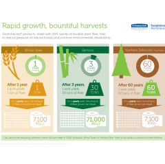"In a resource-constrained, digital world, with fewer sources of recycled fiber, and the need to put less pressure on natural forests, it’s important to continue exploring non-tree fibers" said Iris V. Schumacher, North American Sustainability leader, Kimberly-Clark Professional. "With the GreenHarvest line, Kimberly-Clark is pioneering a new approach to sustainable fiber sourcing and delivering innovative products with the quality and performance customers expect from our trusted brands"