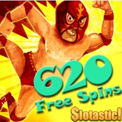 Slotastic Casino is giving players up to 620 free spins on its new Lucha Libre slot game from Realtime Gaming. Until the end of May, online casino players can get 20 free spins on the new TV wrestling-themed slot. They can claim 20 free spins every day in May, if they like, for a total of 620 free spins on the hilarious new game.