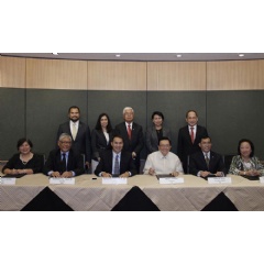 Photo 1, seated L-R: FBDC CFO Lourdes R. Reyes; FBDC Director Edgardo M. Cruz, Jr; Ayala Land, Inc. and FBDC President Bernard Vincent O. Dy; PSE Chairman Jose T. Pardo; PSE President and CEO Hans B. Sicat and PSE Director Vivian Yuchengco. Standing, L-R: PSE COO Roel A. Refran; PSE Corporate Secretary Aissa V. Encarnacion; PSE Director Edgardo G. Lacson; PSE Treasurer Omelita J. Tiangco and PSE Director Ramon S. Monzon.