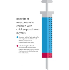A new model developed by the scientists also confounds previous findings on the length of time re-exposure chickenpox boosts immunity to shingles. The effect was thought to last for up to 20 years, but results of the current modeling study show it only lasts for two. The new model is the first based on real immunological and virological data from individuals.