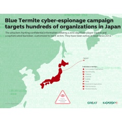 Kaspersky Lab’s Global Research and Analysis Team has discovered Blue Termite – a cyberespionage campaign that has been targeting hundreds of organizations in Japan for at least two years. The attackers hunt for confidential information and utilize a zero-day Flash player exploit and a sophisticated backdoor, which is customized for each victim. This is the first campaign known to Kaspersky Lab that is strictly focused on Japanese targets - and it is still active.
