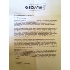 In a letter to attendees of IDWeek, the annual convention held by the Infectious Diseases Society of America (IDSA), IDSA President Stephen Calderwood, MD alerted conference attendees that the IDSA had “learned” about potential protests “by organized groups who disagree with the recommendations made by the IDSA’s clinical practice guidelines on Lyme disease.”