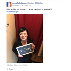 The Selfie promotion ends December 19th. Photos must be of salon services from November 10th to December 19th. Full contest information can be found at couture360.com and the salon’s Facebook page.
