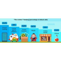 The most of attack traffic has come from China: 43%. The US took second place: 29%. Russia came in third: 28%. (The statistical data is based on the average number of attacks aimed at 1,000 resources of each country named above)