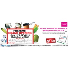 Daiso Fremont Hub store grand opening celebration scheduled for June 11-12, 2016, at the Fremont Hub Shopping Center