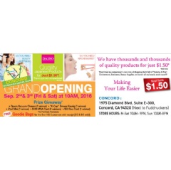 DAISO Japan, a rapidly growing value store known for selling quality items for $1.50, announced that it will hold a grand opening celebration weekend for its Concord, California store on Friday and Saturday, September 2-3, 2016. The Concord Daiso store, located at 1975 Diamond Blvd. Suite E-300, Concord, CA 94520, is the chain’s fifth Northern California store to open this year, for a total of 16 locations in the region. After successfully opening many stores in Southern California, Daiso is focusing its expansion plans in the north.