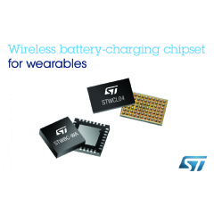 A miniaturized wireless battery-charging chipset from STMicroelectronics saves space, simplifies enclosure design and sealing, and accelerates time to market for ultra-compact sports wearables, wellness monitors, medical sensors, and remote controllers.
