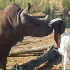 On the Springbok Animal Friendships blog there’s a story about a little Rhino called Osita and how she became best of friends with a goat named Bokkie. Abandoned by her mother, baby Osita grew up with Bokkie at the Aquila Animal Rescue Centre. Then there’s the young giraffe Kiko and little elephant Loboito. Rescued from the wilds, they were in danger of poachers but are now in the good hands of the David Sheldrick Wildlife Trust caretakers. Themba, a baby elephant, was only six months when his mother fell off a cliff and died. At the Shamwari Wildlife Rehabilitation Centre he has become inseparable from his friend Albert, a sheep.