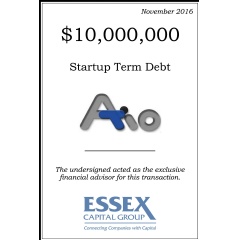 After experiencing the typical capital formation frustrations facing startup enterprises in the United States, the 100% foreign-owned Atio hired Essex to raise the debt component of the new capitalization.
