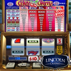 Crazy Cherry is one of sixteen three reel slots games in Lincoln Casino’s mobile casino along with twenty-eight five reel games, assorted video-poker, Blackjack and Roulette. Players can claim a 200% bonus that includes 100 free spins on the popular Funky Chicken slot game by using coupon code CHICKENSPINS when they deposit.