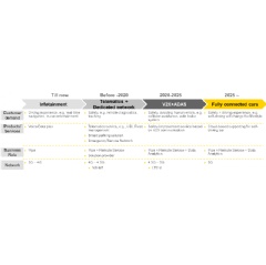 The report claims to be the 1st to propose the evolution route to future fully connected car with mobile broadband network, describe the 4 phase when MNO develop connected car services: Infotainment (3G-4G), Telematics+Dedicated network (4G-4.5G), V2X+ADAS (4.5G-5G), Fully Connected Cars (5G)