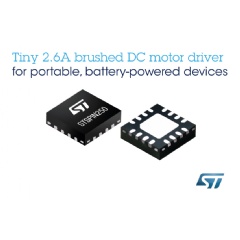 Geneva, March 20, 2017 -- The STSPIN250 single-chip 2.6A driver for brushed DC motors extends STMicroelectronics’ family of miniature, low-voltage, energy-efficient drivers for battery-powered portable and wearable applications.