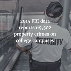 According to data from the FBI’s Uniform Crime Reporting program, there were 69,502 reported property crimes on college campuses in 2015. During the same year, Clery Act reports on campus safety reported that there were 1,926 fires within on-campus student housing.