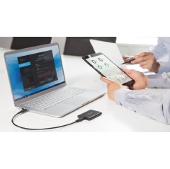 Any Device You WantThe UX of the T5 has been designed with the expansion of the device and its surrounding user environments in mind. An identical UX is supported through various platforms from Windows, MacOS, to Android, and this UX also provides a consistent experience in many different user environments such as smartphones, tablets, PCs, etc. Therefore users can comfortably make use of the T5 anytime, anywhere.
