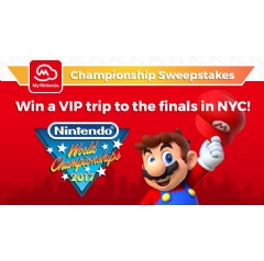 NO PURCHASE NECESSARY. Void where prohibited. Open to legal residents of the 50 U.S./D.C. and Canada (excl. Quebec); age 13+. “Sweepstakes Period” is 9:00:01am PT on 9/1/17 to 4:59:59pm PT on 9/8/17. To enter, log-in to the Sweepstakes website with your Nintendo Account at nwc.nintendo.com/sweepstakes/, and click the “enter now” button to agree to the Official Rules (creating a Nintendo Account is free at accounts.nintendo.com/register). Limit 1 entry per person. 1 winner will be randomly selected to get a trip prize package for winner and a guest to attend the Nintendo World Championships 2017 to be held in NYC on 10/7/17 (includes round-trip coach class airfare if winner located more than 200 miles from NYC (ARV $1400); two nights lodging in one double-occupancy room (ARV $1000); $400 VISA gift card; and two tickets to Nintendo World Championships). Odds of winning depend on number of eligible participants. Details/restrictions apply; visit nwc.nintendo.com/sweepstakes-rules.pdf for full rules. Sponsor: Nintendo of America Inc., 4600 150th Ave NE, Redmond, WA 98052.