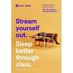 “In bringing Spotify and Hulu together, we’re now able to offer students – both the millions already on Spotify Premium, and those who are new to Spotify – access to the world’s best music, TV and movie content in the simplest possible way,” said Alex Norstrom, Chief Premium Business Officer at Spotify. “We’re very excited to be partnering with Hulu – a like-minded company which is as focused as we are on delivering the very best in high quality streaming content.”
