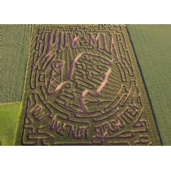 The maze features a Mini Maze, with .3 mile of trail, inside the larger maze, which consists of 3.8 miles. The Mini Maze is fun for ages 3-7 and will deliver a history lesson. Six stations will each highlight an icon of the Revolutionary War. Children opting to go through this maze may obtain a free punch card with matching icons. For each card completed and returned The Farm In Harmony will donate $1 to the Military Order of the Purple Heart.