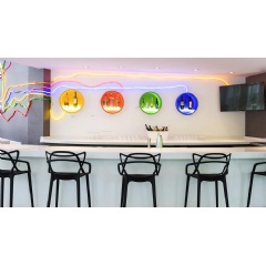 Next stop: the rooms. Walking down the corridors, you can appreciate the 93 rooms succeeding each other is a whirl of four colors – green, yellow, red and blue – the famous ones from the Big Apple subway lines. With their 26-inch HD LED televisions and their majestic Sweet Bed by ibis Styles, watching your favorite shows has never been more pleasant. Especially enjoying a snack from Metrocard at the same time.