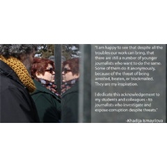 “My hope is that one day we will have a strong enough society to demand justice in all corruption cases, including for those in the highest positions of the hierarchy,” Ismayilova said. “Writing and exposing corruption is not enough – we need to engage local and international legal mechanisms to make our exposures more meaningful. The Allard Prize will help me to continue this kind of work.”