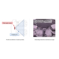 Conventional driver-monitoring systems generally use a camera to analyze the driver’s face for inattentiveness or drowsiness. Recent imaging systems monitor not only the driver but also the front passenger for added safety and convenience. Mitsubishi Electric has now developed a technology that uses just one wide-angle camera to monitor both the driver and the front passenger and warn them about potentially dangerous driving behavior, such as looking off to the side or sleepiness, and to identify face and hand gestures for enhanced assistance, such as changing air conditioning settings.