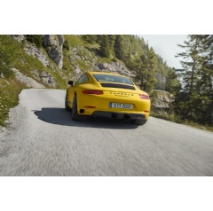 The six-cylinder flat engine with a displacement of three litres and twin turbocharging generates an output of 272 kW (370 hp) and a maximum torque of 450 Nm, delivering between 1,750 rpm and 5,000 rpm. The weight-to-power ratio has been improved to 3.85 kg/hp, ensuring enhanced performance and more agile driving dynamics. Thanks to a shorter rear axle ratio and mechanical differential lock, the 911 Carrera T can sprint from zero to 100 km/h in 4.5 seconds – 0.1 seconds faster than the 911 Carrera Coupé. The model reaches the 200-km/h limit in just 15.1 seconds. Porsche Doppelkupplung (PDK) is also available as an option on the Carrera T, enabling the vehicle to reach 100 km/h in 4.2 seconds, and 200 km/h in 14.5 seconds. Both transmission variants enable a top speed of over 290 km/h.