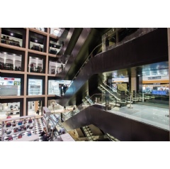 -26 new elevators and escalators are implemented at new Rinascente department store at the Piazza del Tritone in Rome