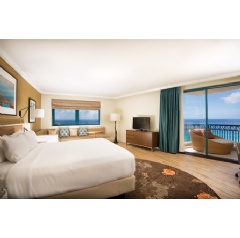 [p"The debut of our butler program and new room design allows us to offer guests an elevated experience, ensuring we remain the premier upscale resort on the island" said George Stanfield, general manager, Hilton Barbados Resort. "The unique, relaxed approach to the design will provide our guests with a superior room product complete with innovative flourishes and abundant luxurious touch points"[/p]Hirsch Bedner Associates transformed the resort’s guest rooms into inviting, sleek and contemporary beach hideaways inspired by the island’s natural elements, with warm earth and Caribbean ocean tones. Rooms feature whitewashed and wood furnishings, organic driftwood accent décor, rugs with pops of vibrant colors and an oversized oceanic abstract painting. Executive rooms also boast windows above the bathtub providing direct views of the ocean. The rooms’ flooring is a blonde wood grain tile pattern leading into the corridors where the design reflects the texture of undulating sand. The new design also boasts technology upgrades, including charging stations at each bedside and desk.