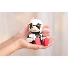Kirobo Mini is a miniature communication partner developed to provide companionship. It fits in the palm of the hand and is only 10 cm high when seated. It turns its head toward the person speaking and engages in casual conversation*1 while moving its head and hands. Its compact size means it can be taken just about anywhere.