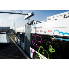 ABB’s 20-second flash-charging technology was a hot topic today as two articulated electric buses, the first of their kind in the world, went into service on bus line 23 in Geneva. It takes less than 1 second to connect the bus to the charging point on an overhead high-power charging contact when it pulls into selected stops and tops up its batteries while passengers embark and disembark. The complete fleet of 12 emission-free buses links the airport with the city’s suburbs. Through optimal energy management, the system can save as much as 1,000 tons of carbon dioxide on a line covering 600,000 kilometers per year.