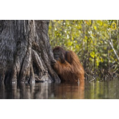 Bojan took the winning photo after waiting patiently in the Sekoyner River in Tanjung Puting National Park in Borneo, Indonesia. After spending several days on a houseboat photographing orangutans in the park, Bojan learned of a location where a male orangutan had crossed the river – unusual behavior that he knew he had to capture. After waiting a day and night near the suspected location, a ranger spotted the orangutan the next morning at a spot a few minutes up the river. As they drew near, Bojan decided to get into the water so the boat did not scare the primate. About five feet deep in a river supposedly home to freshwater crocodiles, Bojan captured the photo when the orangutan peeked out from behind a tree to see if the photographer was still there.