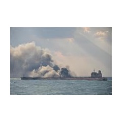 A huge fire was still raging around the stricken ship, which had been carrying 136,000 tonnes of light oil, or about 1m barrels, with fierce heat and thick black smoke billowing from the vessel and the surrounding sea.