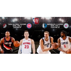 NBA TV will feature the new look Detroit Pistons and LA Clippers in a pair of live game telecasts during its Fast Break Monday coverage on Monday, Feb. 5. The Pistons, with recently acquired Blake Griffin and All-Star Andre Drummond, will host the Portland Trail Blazers and All-Star Damian Lillard, at 7 p.m. ET. In the network’s second game of the night, the LA Clippers – with newcomers Tobias Harris and Avery Bradley joining DeAndre Jordan – will host Dirk Nowitzki and the Dallas Mavericks at 10:30 p.m.