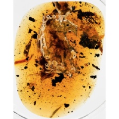 Although there have been previous specimens in Burmese amber that are more visually spectacular, none of them have contained as much of the skeleton as this juvenile bird, which features the back of the skull, most of the spine, the hips, and parts of one wing and leg.