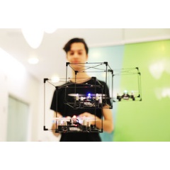 The system allows children to arrange LEGO elements into a shape of their choice and watch as a group of miniature drones takes flight to mimic the shape and colour of their creation in mid-air. With the aid of tiny sensors and gyroscopes, the system also tracks when the children move, twist and bend their designs. The drones faithfully replicate any shape alterations as an in-air animation.
