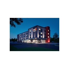 - The modern exterior hotel design includes an open and airy retail-like entry, a canopy and uses the stairwell as an eye catching red architectural feature. On the inside, guests will find vibrant, open public and work areas and inviting communal spaces that allow guests to relax, work, connect or eat. Hotels will offer a complimentary grab-and-go breakfast and marketplace options for guests on the go.