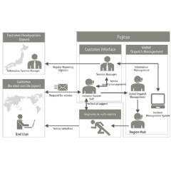 1. Support for IT devices from multiple vendors in almost every part of the worldBy coordinating with Fujitsu Group companies outside Japan and with multiple service providers around the world, Fujitsu will provide on-site visits to support IT devices, including third party products, for customer locations in nearly 180 countries.