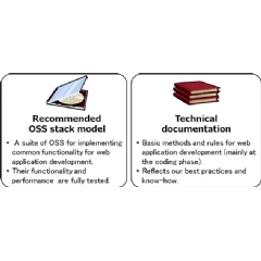 Macchinetta Framework consists of a recommended OSS stack model, which is a suite of OSS for implementing common functionality, and technical documentation on basic methods and rules for web application development (Fig. 1).