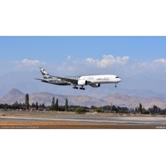 The A350-900 flight test aircraft arrived in Santiago’s Arturo Merino Benitez Airport for the 20th edition of the FIDAE Air Show, where it will be on static display and take part in flying demonstrations between 2-5 April.