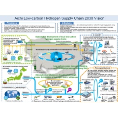 To further promote measures to combat global warming, the low-carbon footprint of the hydrogen supply chain as a whole, through use of renewable resources and the concept of "production, transportation, and use (of hydrogen)" has been promoted in Aichi Prefecture. To meet this goal, shared ownership of the vision is required throughout the region and different entities including industry, academia, and government are expected to work together towards it. In line with this, the Aichi Low-Carbon Hydrogen Supply Chain Promotion Association authored the 2030 Vision, which envisions an Aichi Prefecture in 2030 that makes active use of low-carbon hydrogen in 2030, as well as a roadmap to achieve this.