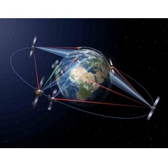 The system’s satellites are designed to lock on to low-orbiting satellites via laser and collect their data as they travel in low Earth orbit scanning the Earth. From its position in geostationary orbit, the SpaceDataHighway acts as a relay, transmitting the large quantities of data acquired by these observation satellites down to Earth in near-real time at a speed of 1.8 Gbit/s, instead of storing the data on board until the satellites pass over their own ground station.