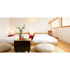 With its two European-style beds plus two Japanese-style futon beds, the big advantage of this suite is that it can comfortably accommodate between 2 and 4 guests, so it can flexibly adapt to accommodate a range of different guest groupings, such as couples, families or groups.