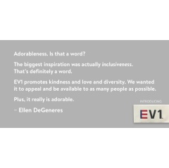 I’m thrilled to announce that we are working with Ellen to introduce EV1, a new women’s line that will debut this September and will feature nearly 60 items, ranging from denim and tees to accessories and footwear. The core of the EV1 collection is denim – an iconic American staple. We, along with Ellen, wanted to make a line that worked for everyone (EV1). Designed to be effortlessly stylish, EV1 was inspired by Ellen’s own confidence and optimism (think tees with inspirational sayings, elevated denim and, of course, fantastic sneakers). It’s cool, fun and accessible. All launch items are priced at $30 or less and are designed to be mixed and matched. The line will also offer a wide range of sizes.