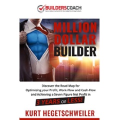 As the founder of Builders Coach, Kurt Hegetschweiler has officially become recognized as the building industries “Millionaire Maker” having achieved a seven figure Net profit result with multiple builders, some as young as 29 . Since 2004 Kurt has helped 100’s of builders structure their businesses for optimum profit, work-flow and cash-flow.