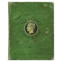 Years before his rise to fame as a musician and member of the Beatles, Lennon was a schoolboy in Liverpool, England, when his older cousin, Stanley Parkes, inspired Lennon’s interest in stamp collecting and gave him his stamp album. Lennon rubbed out Parkes’ name and address on the album’s flyleaf, replacing it with his own signature and the address at Mendips, the home he shared with his aunt Mary (“Mimi”) Smith and her husband George. Already a budding artist, Lennon sketched beards and mustaches in blue ink of the likenesses of Queen Victoria and King George VI on the album’s title page. Lennon continued to collect and trade stamps for several years after receiving this album. According to Parkes, Lennon began collecting at about age 9 and actively collected stamps for several years. There is evidence throughout the album that Lennon added and removed stamps. Lennon’s handwritten notes on the flyleaf indicate the album may have contained as many as 800 stamps at some point.
